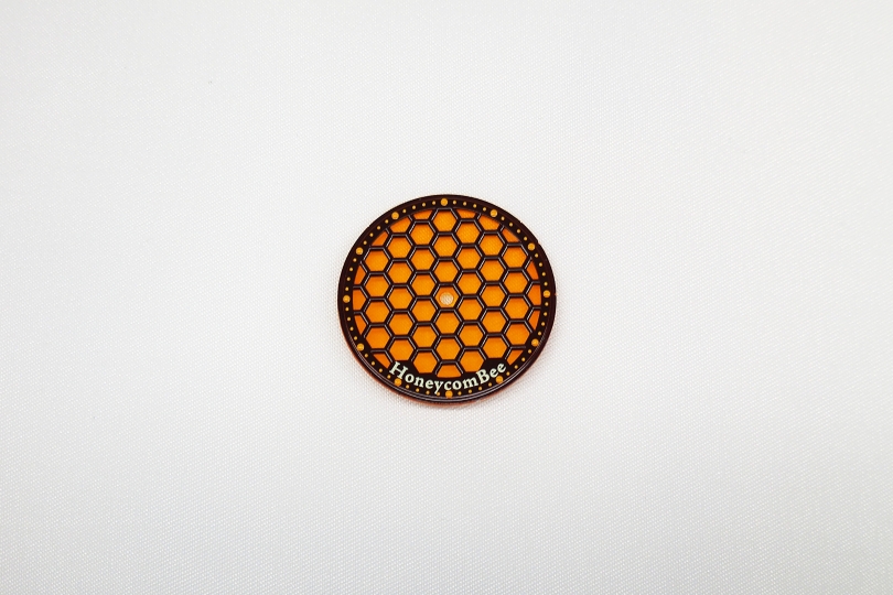ハニカム模様の裏に透明板を重ねることで、ハチミツがたっぷり詰まっている様を表現しています。