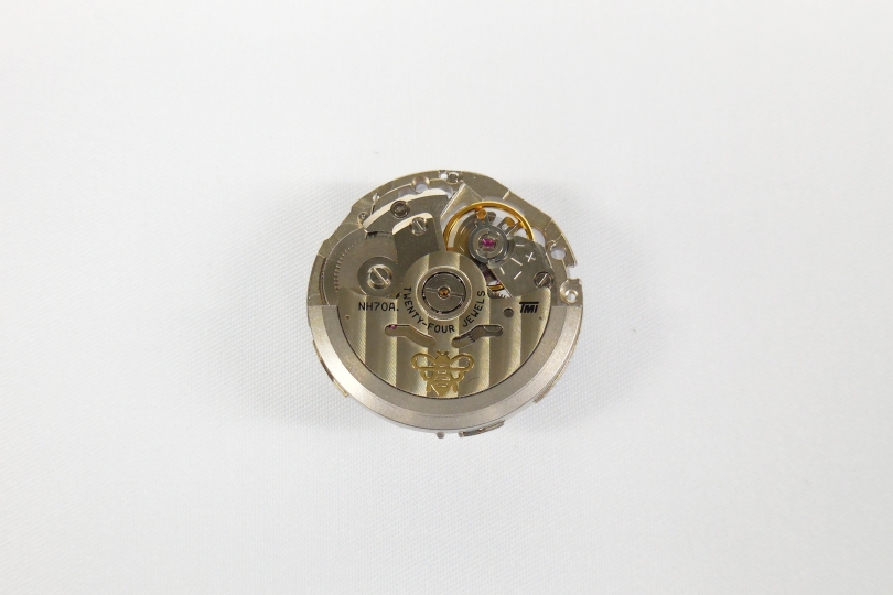 ムーブメントは、TMI(SEIKO)のスケルトン機械式ムーブメント「NH70」を搭載しています。