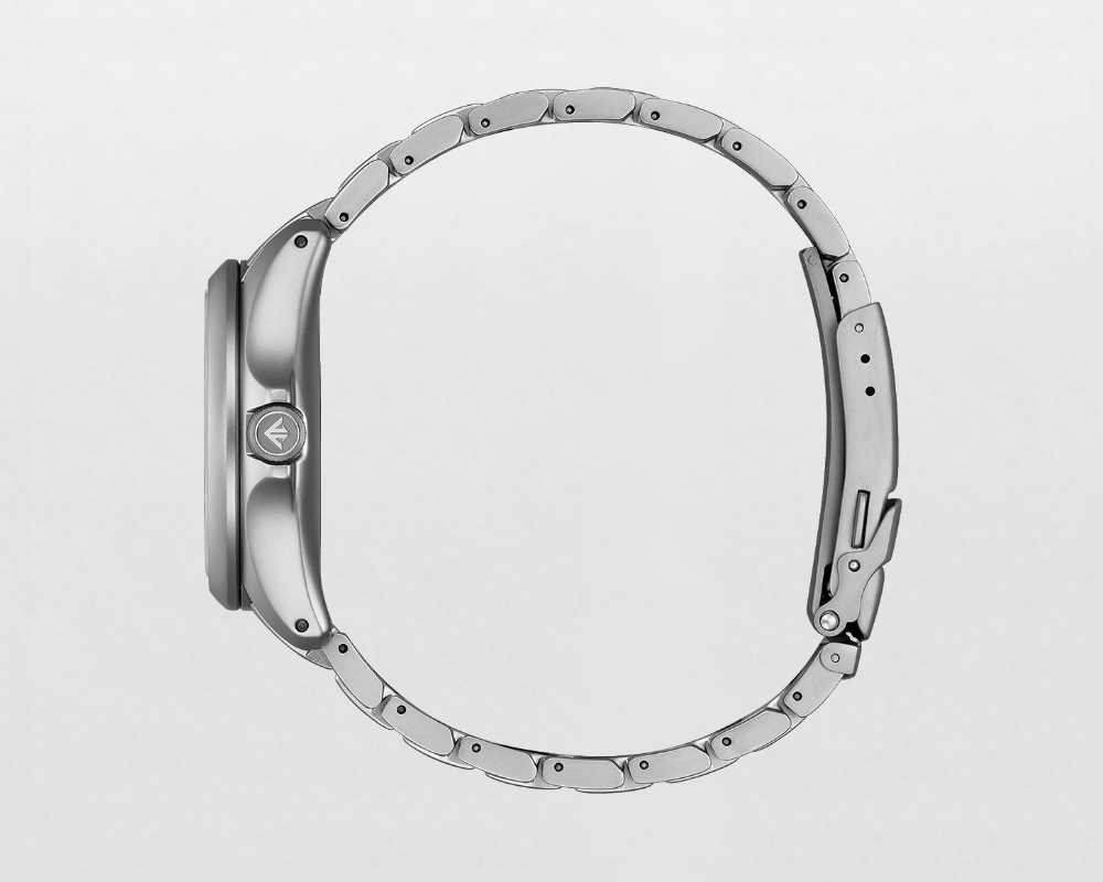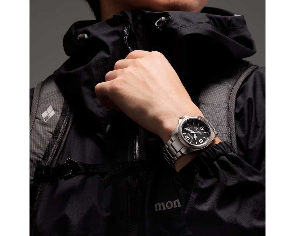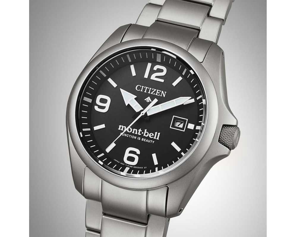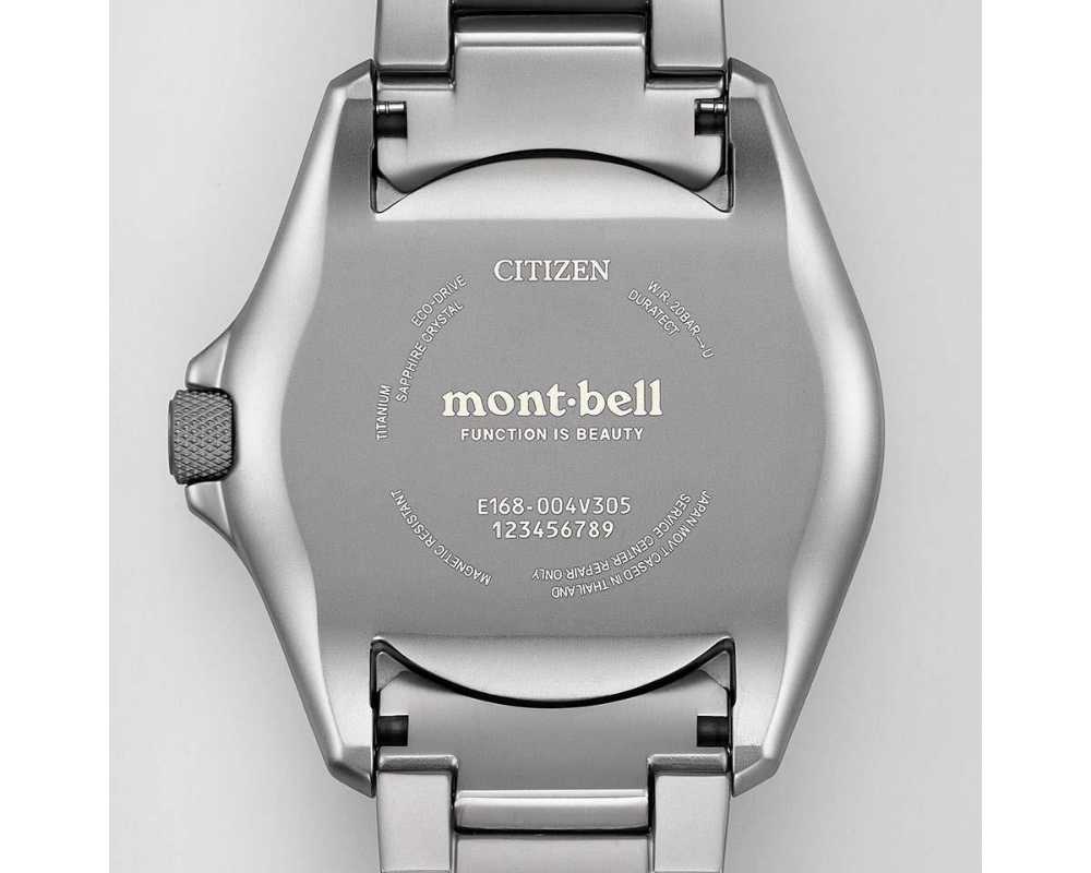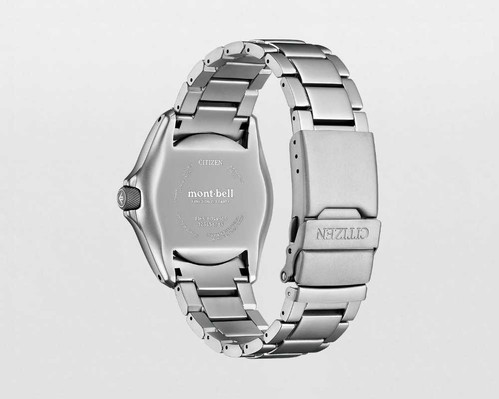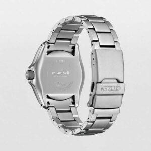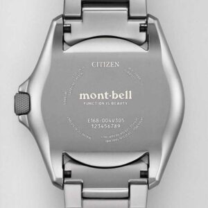 ダイバーズウオッチ用に開発されたCal.E168を搭載。アウトドアのハードな環境にも耐え抜くタフさ、昼夜問わない時刻の見やすさ、操作の簡単さといった、優れた実用性を備える1本です。ケースとバンドには打ちキズにも強いデュラテクトMRKを施しています。また、衝撃で外れないようメタルバンドにはダブルロックバックルを採用。裏ぶたレス構造のケースバックには、モンベルのブランドロゴをレーザー刻印。CITIZEN×mont-bellのロゴが入った専用ボックス付きです。