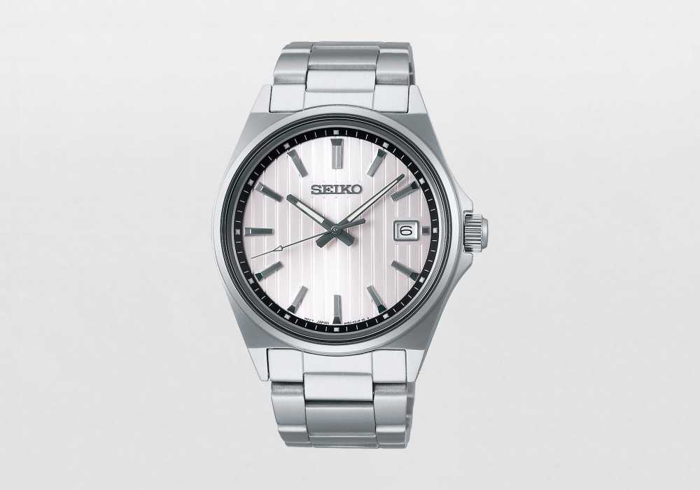 美しい金属ダイヤルの輝きが特徴的な、セイコーセレクションの電池式クオーツモデル。